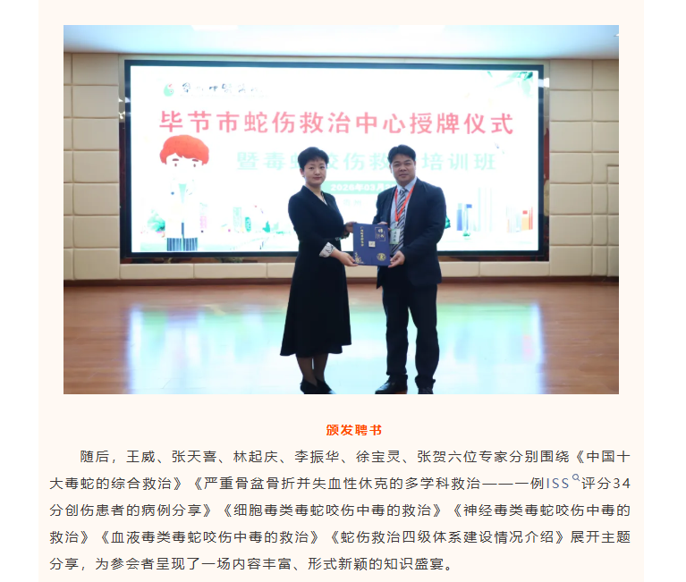 市区第一家!毕节市蛇伤救治中心落户毕节市中医医院